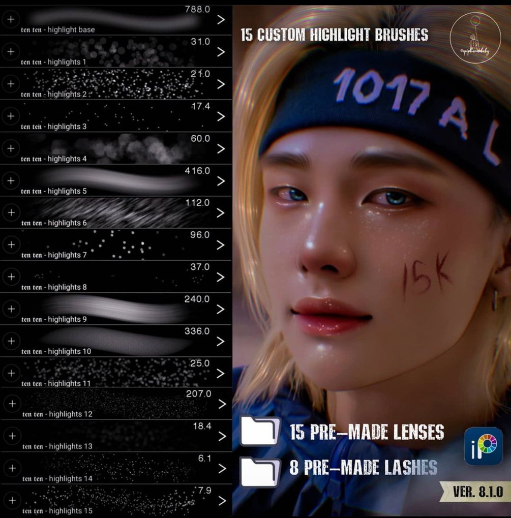 15 Custom Highlight brushes for Ibis paint! for version 8.1.0 and up.